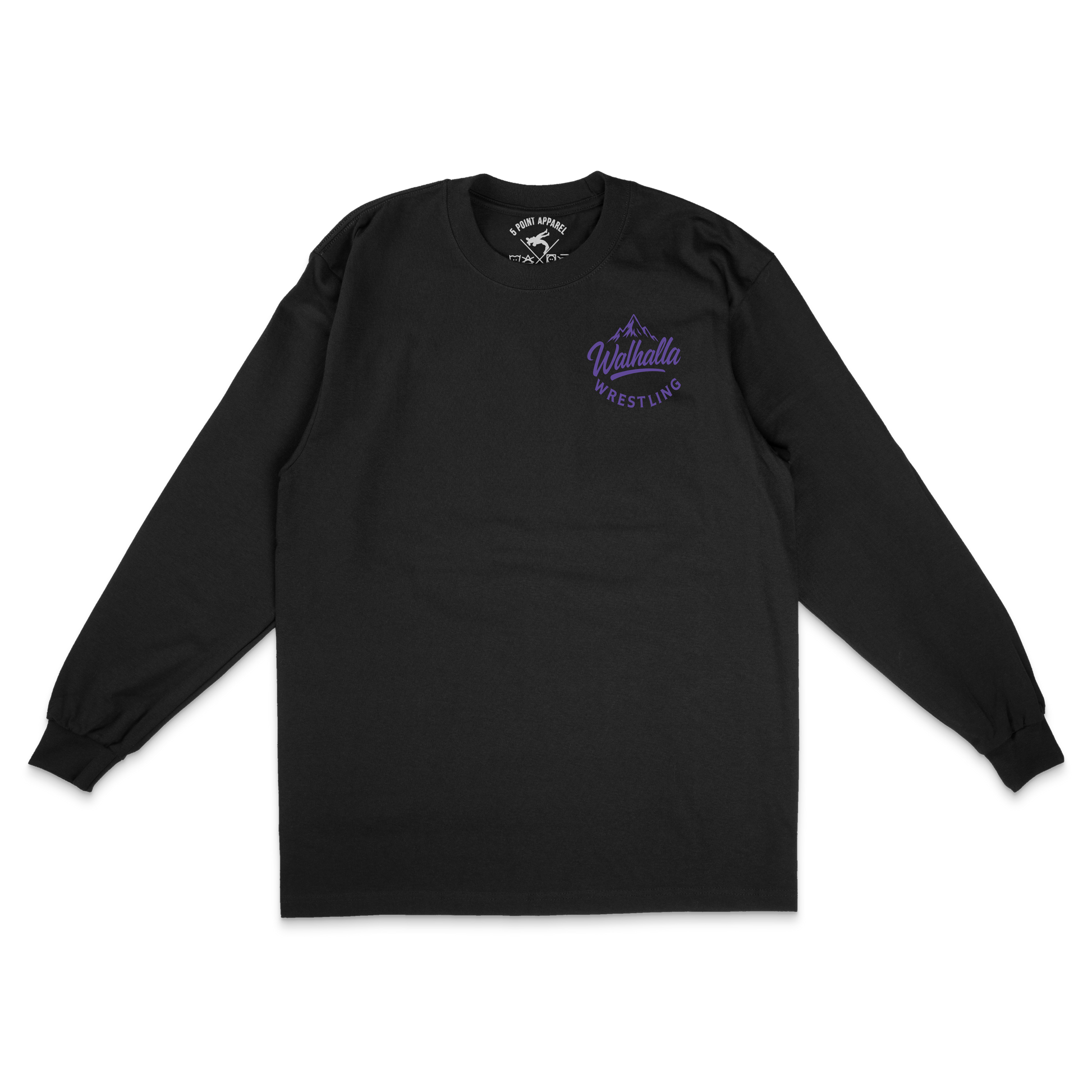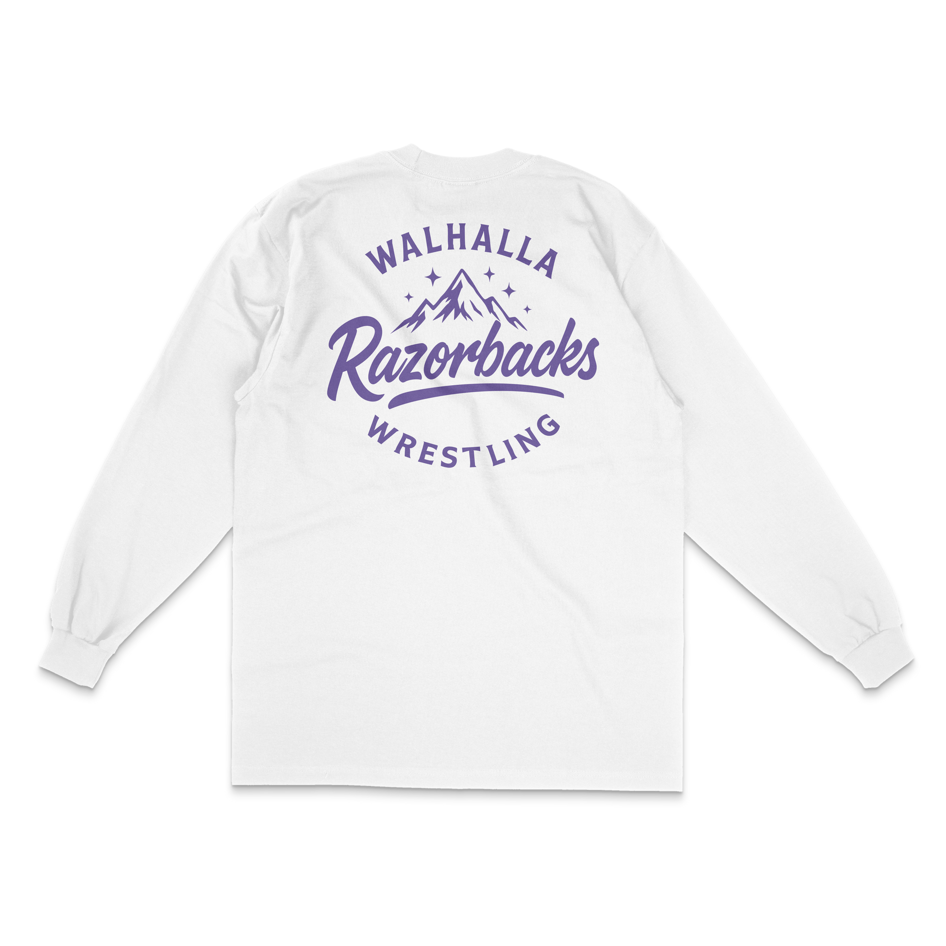 This design pays tribute to the hometown pride and rugged spirit of Walhalla. Featuring a bold mountain silhouette wrapped in our signature Walhalla Wrestling branding, this piece is made for those who grind every day and carry the Razorback legacy wherever they go.